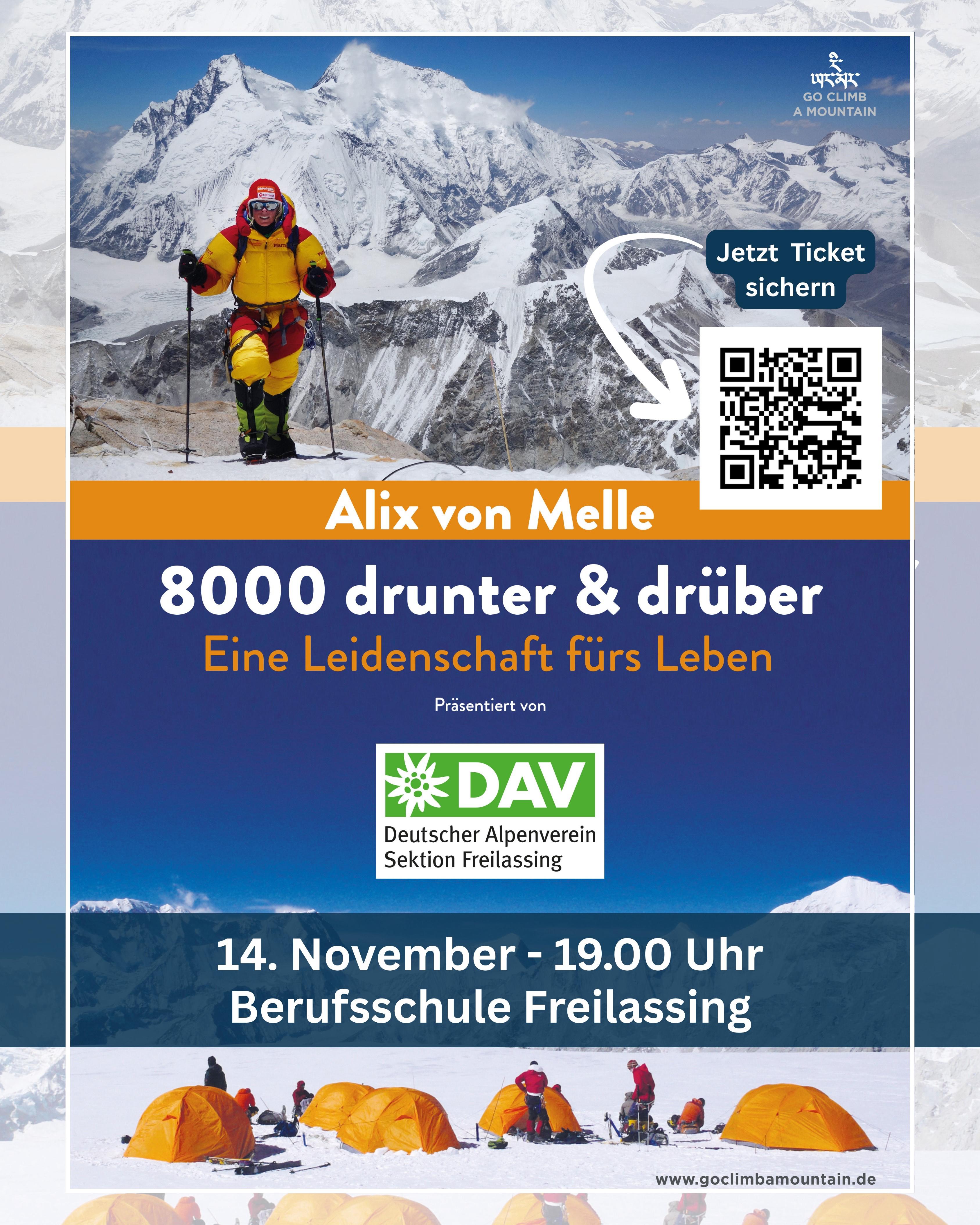 Zur Info: Die Alpenvereinssektion Freilassing veranstaltet am 14. November um 19 Uhr in der Aula der Berufsschule Freilassing einen Vortrag unter dem Titel "8000 drunter & drüber - Eine Leidenschaft fürs Leben". www.dav-freilassing.de/8000-drunter-und-drueber . Karten gibt es im Reisebüro Hogger in Freilassing oder online bei Ticket Scharf.